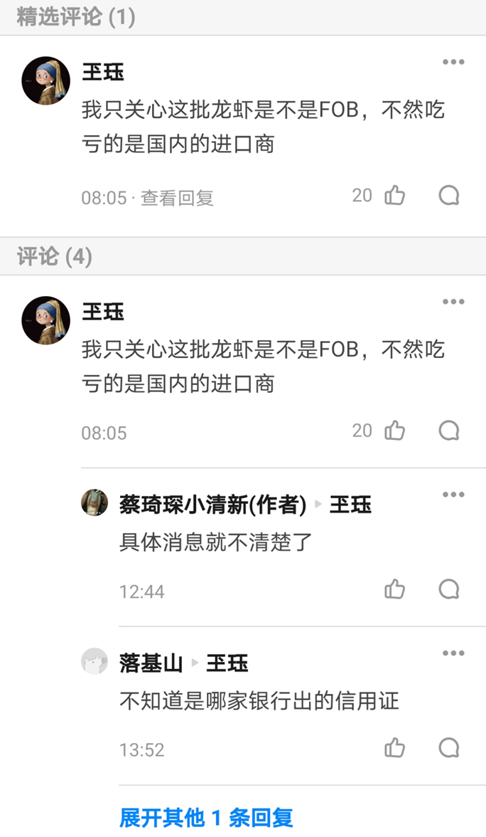 根据以下所给的第一张图片进行搜索,了解2020年11月底这则新闻的来龙去脉。结合材料,请自行思考或讨论,说明为什么图3的网友认为如果使用FOB报价则吃亏的是国内的进口商?出具信用证的银行又会受到何种牵连?