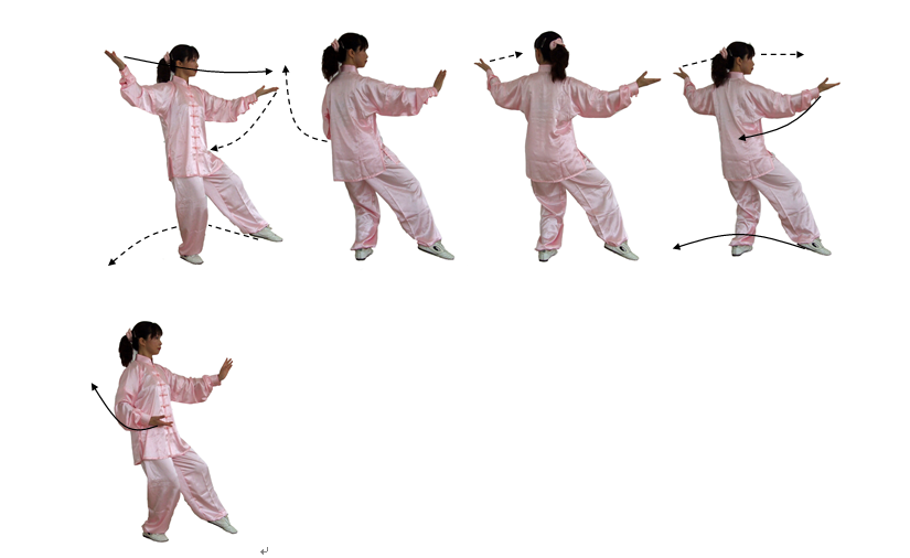 要点:身体重心转变带动上肢动作,上下协调一致;左手上起时要由左向上、向前,微带弧形;身体姿势要平稳自然,沉肩垂肘,胸部放松。