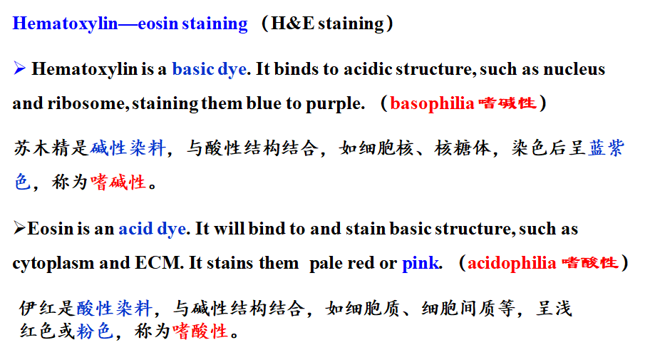 组织学中最常用的染色方法是苏木精-伊红染色,又称H.E 染色。