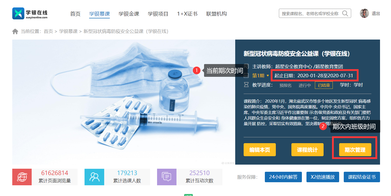 课程统计单位实际是班级,且只统计班级开放时间在期次时间之内的班级