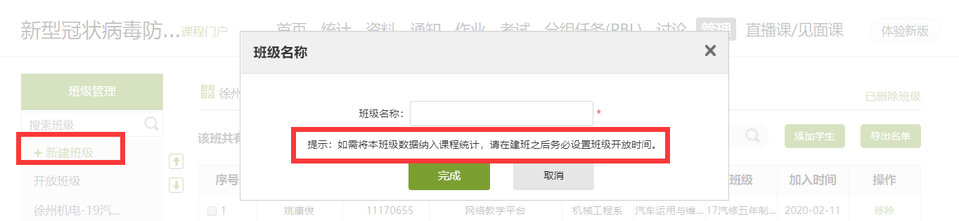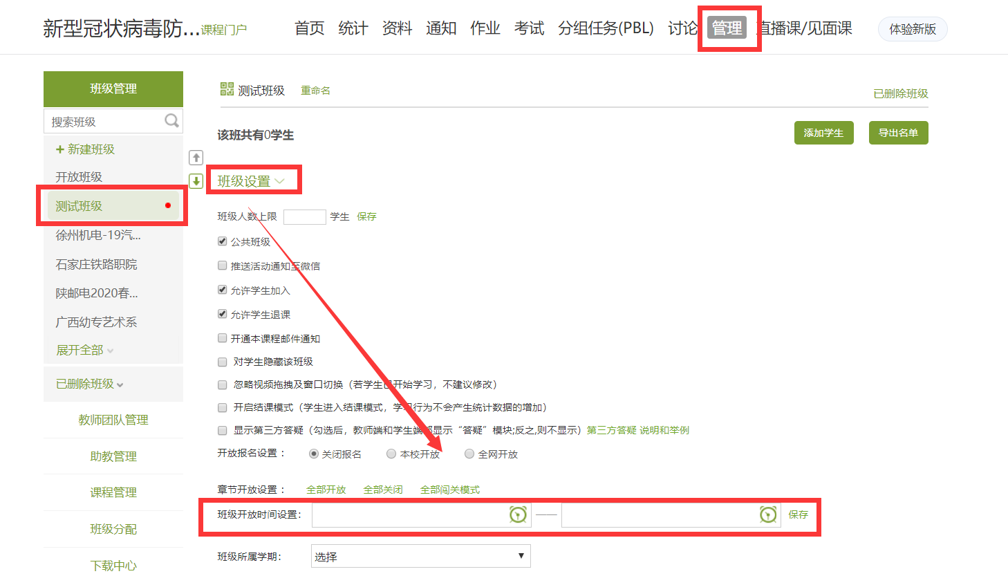 故新建班级时务必设置班级开放时间且在期次时间之内。