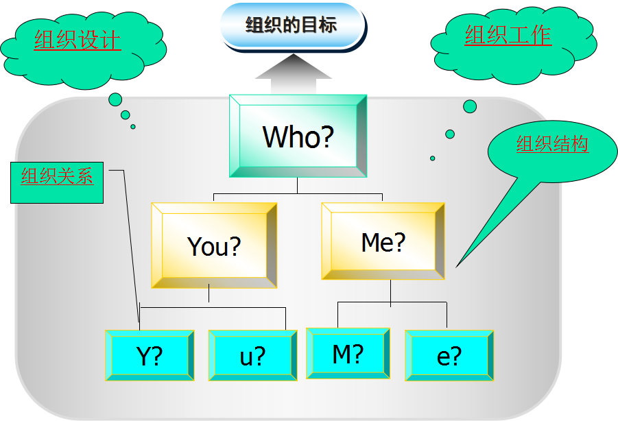组织关系:组织关系指在一个组织中,部门与部门、岗位与岗位、人与人之间的关系,主要表现为权力关系。
