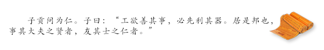 子贡问怎样培养仁德,孔子说:“工匠要想做好工,必须先把器具打磨锋利。住在这个国家,就要侍奉大夫中的贤人,结交士中的仁人。”