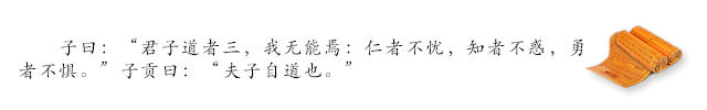 孔子说:“君子所循的三个方面,我都没能做到:仁德的人不忧愁,智慧的人不迷惑,勇敢的人不惧怕。”子贡说道:“是老师对自己的描述。”