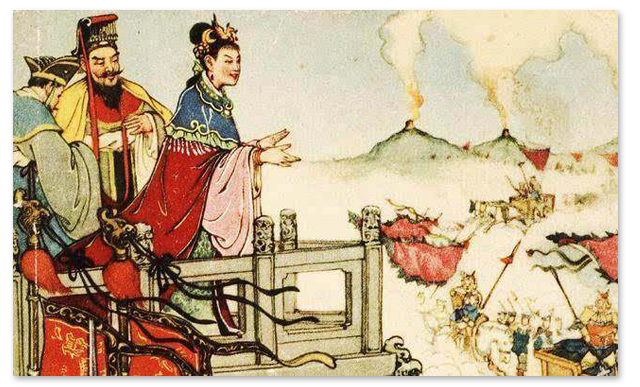 曾有小女孩唱着歌谣:“桑木做成的弓啊,箕木制成的箭袋,是要灭亡周国的。”当时周宣王听到这首歌,正好有一对夫妇卖桑弓箕箭袋,于是周宣王派人抓住并杀掉他们。夫妇俩在逃跑的路上,遇到那侍女丢弃在路旁的那个怪女孩,夜间啼哭,因此可怜她,便将她收养。于是,夫妇俩逃到褒国。后来,褒国人有罪,便请求献上那位侍女丢弃的怪女孩给周幽王来赎罪。此女便是褒姒,因是从褒国而来,故称褒姒。