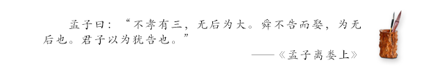 不孝有三种(三或为虚指)表现,没有后代是最重大的。舜娶妻时没有告知父母,就是因为还没有后代,所以君子认为这相当于告诉长辈了(不算失礼的意思)。
