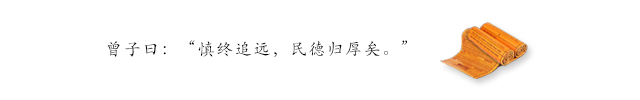 曾子说:"谨慎地办理父母的丧事,虔诚地追念祭祀祖先,这样做就可以使老百姓的道德风俗归于淳朴厚道了。"