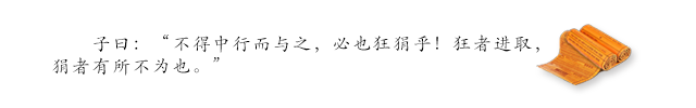孔子在这里其实是探索寻找中庸的办法,而并非自我标榜为中庸之人。中庸介于激进与保守之间,我们唯有从它们之间去寻找平衡,只有当发现那种介于两极端间的某种特定状态时,我们才能知道什么是中庸,这时再稳稳地持守中庸,便能做到合乎正道。“狂”与“狷”是两个彼此对立的极端。一个流于冒进,一个流于畏缩,孔子说的中行正是不偏不倚。