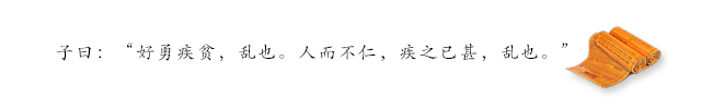 孔子说:“好勇而又恨自己太贫穷之人,容易作乱。对于不仁德之人,责逼过甚,也容易激出乱子。”