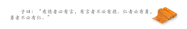 孔子说:“有德的人一定有好的言论,但有好言论的人不一定有德。仁人一定勇敢,但勇敢的人不一定有仁德。”