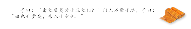 孔子说:“仲由弹瑟,为什么在我这里弹呢?”孔子的其他学生因此而不尊重子路。孔子说:“仲由的学问啊,已经具备规模了,只是还不够精深罢了。”