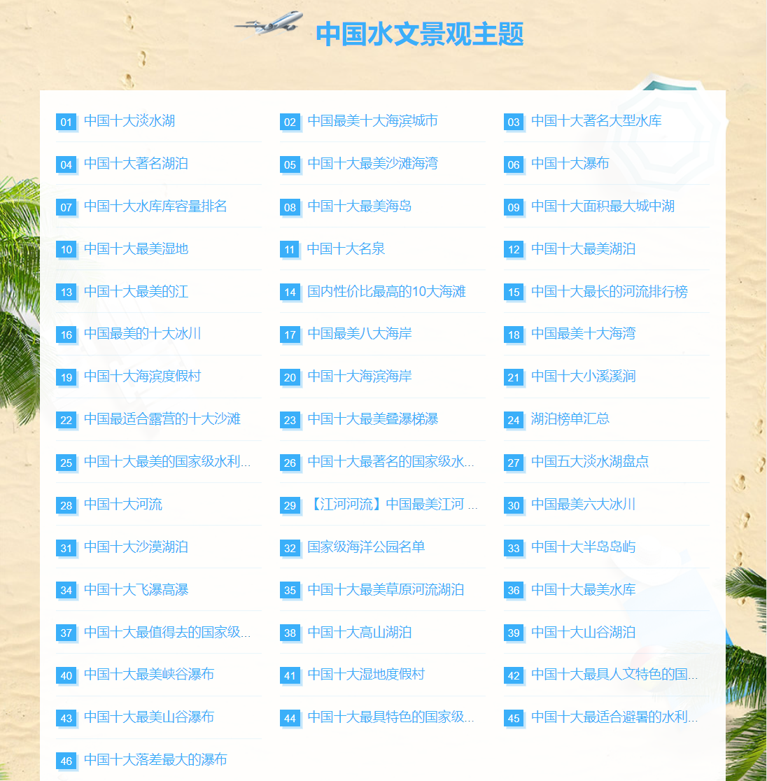 我国水域面积广阔,构成水体旅游资源的海滨、河流、湖泊、瀑布、涌泉等水体类型齐全、内涵丰富,是旅游资源中一道亮丽的风景。