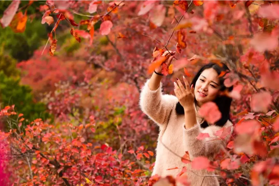 每到秋天,北京香山漫山遍野的黄栌树叶红得像火焰一样。这些黄栌树是清代乾隆年间栽植的,200多年来,逐渐形成了拥有94000株的黄栌树林区。每年的10月中旬到11月上旬是观赏红叶的最好季节,红叶延续时间通常为1个月左右。