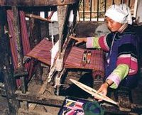 布依族的蜡染久负盛名。早在宋代就有贵州惠水特产蜡染布的记载。清代史书上所说的“青花布”,就是蜡染布。布依族姑娘从十二三岁起,便开始跟母亲学习蜡染技术。先把蜜蜡加热熔为蜡汁,然后用三角形的铜制蜡刀蘸蜡汁,在自织的白布上精心描绘各种漂亮生动的图案,再放入蓝靛缸中渍染成蓝色或浅蓝色,最后将布入锅煮掉蜜蜡,捞出后到河水中反复荡涤,晾干,就成独具特色的蜡染工艺品。其中不少佳品现展出于北京博物馆。