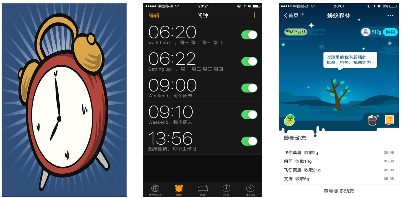 从闹钟向手机闹铃转变,从早餐看报纸向收蚂蚁森林转变