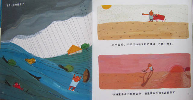 洪水过后,干旱又持续了很长的时间,大地干裂了。
