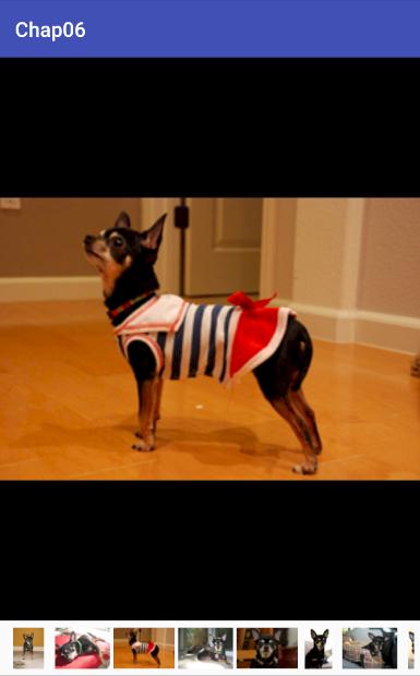 将事先准备好的多张图片复制到资源drawable目录。安排一个图片切换器(ImageSwitcher)和布局容器(HorizontalScrollView),单击布局容器(Horizontal- ScrollView)里的小图片,就会在图片切换器(ImageSwitcher)中出现放大的图片,效果如上图所示。