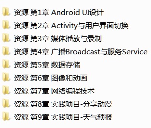 教材案例使用的文字图片素材、实践项目素材,目录如下: