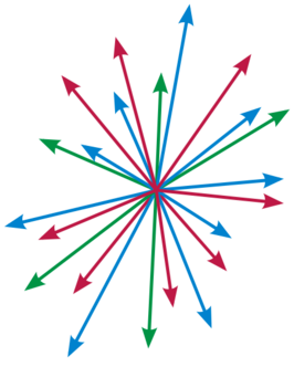 更抽象的说,一个F上的向量空间是一个F-模。V的成员叫作向量,而F的成员叫作标量。若F是实数域R,V称为实向量空间;若F是复数域C,V称为复向量空间;若F是有限域,V称为有限域向量空间;对一般域F,V称为F-向量空间。