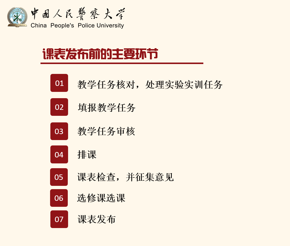 课表发布前的主要环节