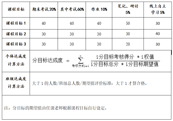 2.1过程性评价:40%(期中考试20%,笔记、研讨:5%,线上自主学习:5%,作业:10%)