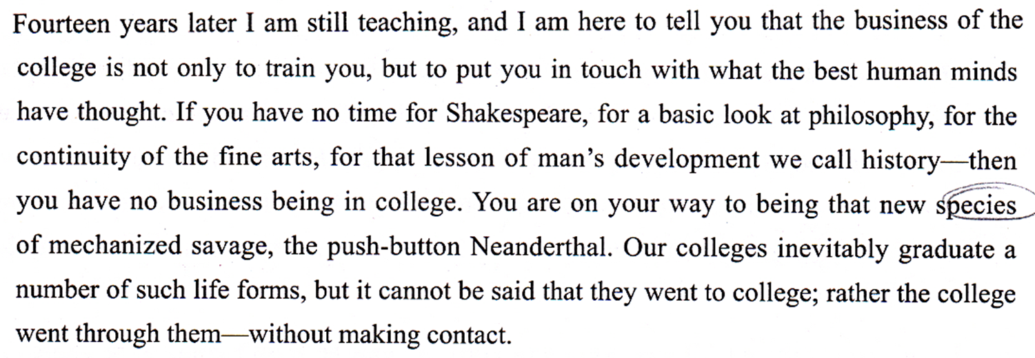 university does not train mechanized savages but specialists armed with what