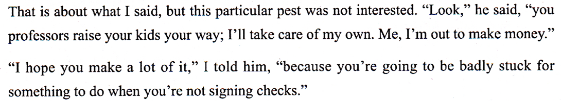 student was not convinced and said he attended college only to make money.