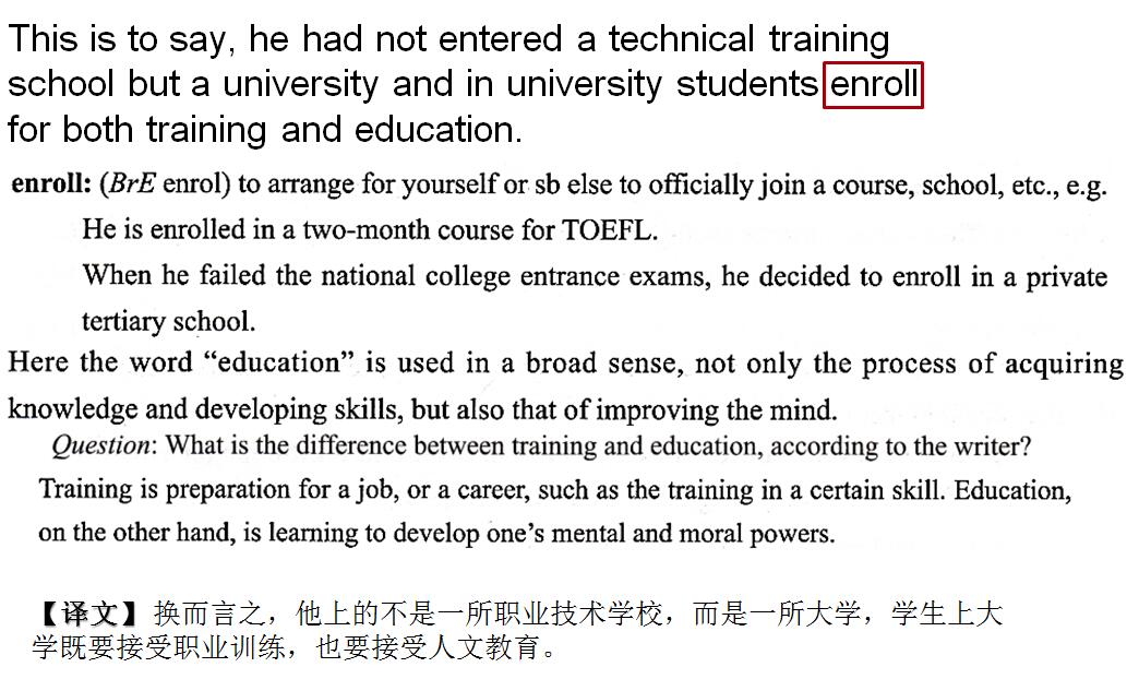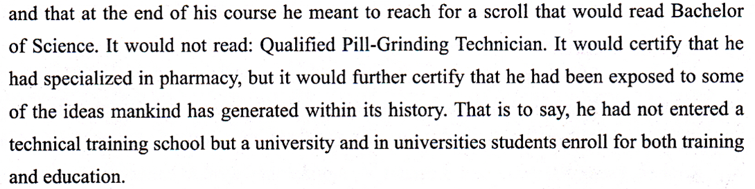 writer wanted to tell him that a university offers both training and education.
