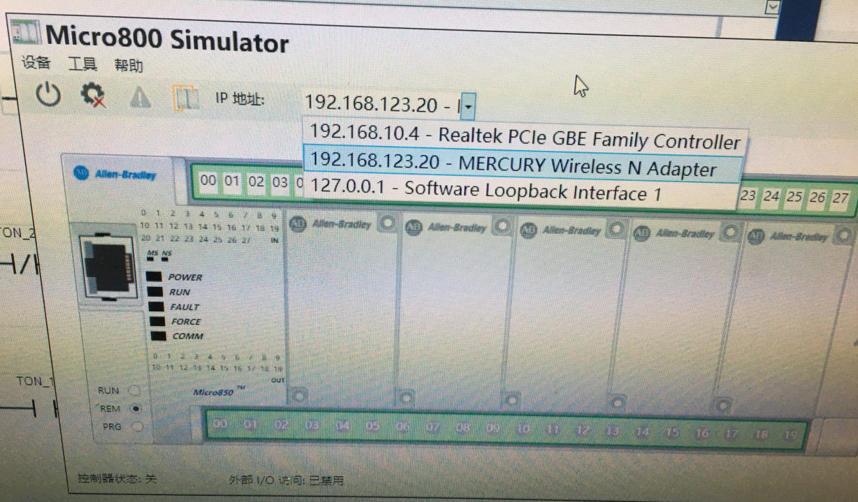 在此基础之上,完成Micro800仿真的IP地址设定,启动PLC仿真器,并通过RSLinx软件进行设置。
