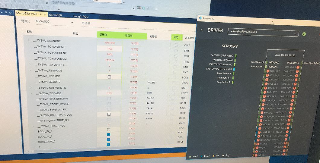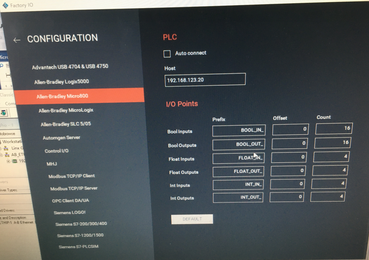2、建立Micro800仿真器与Factory IO间的连接