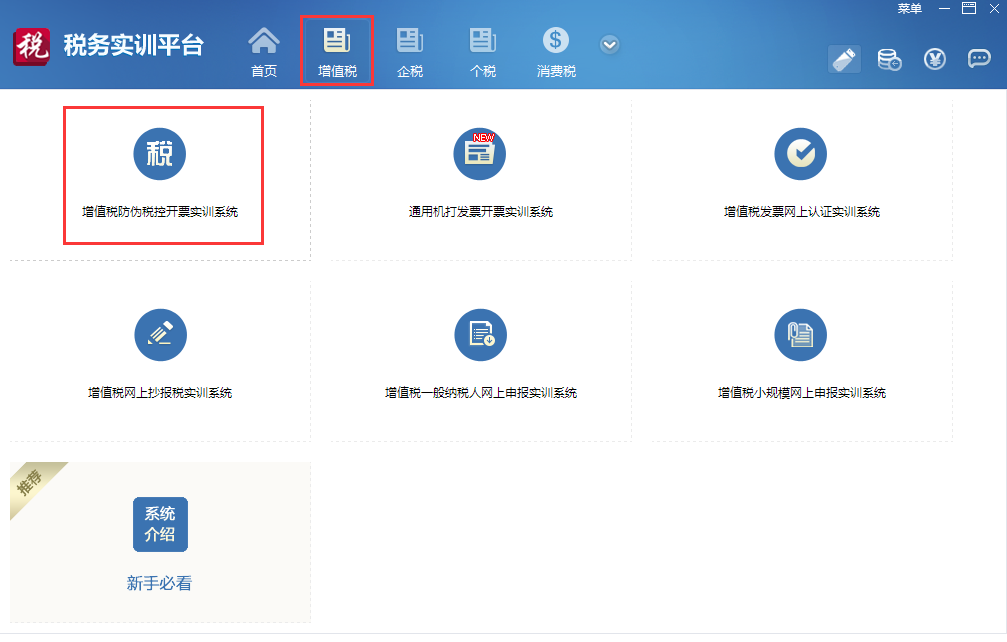 学生登录税务仿真综合实训软件,显示系统主界面,如图: