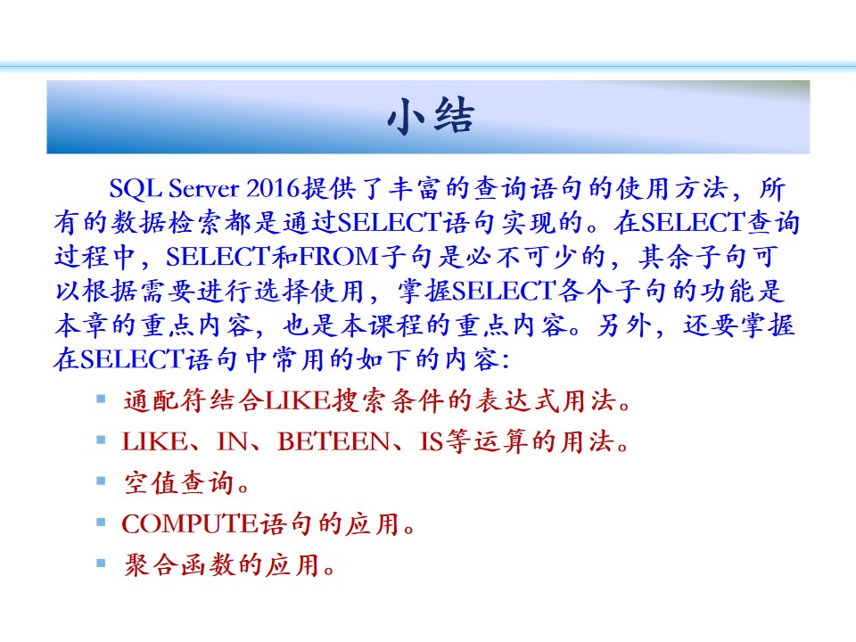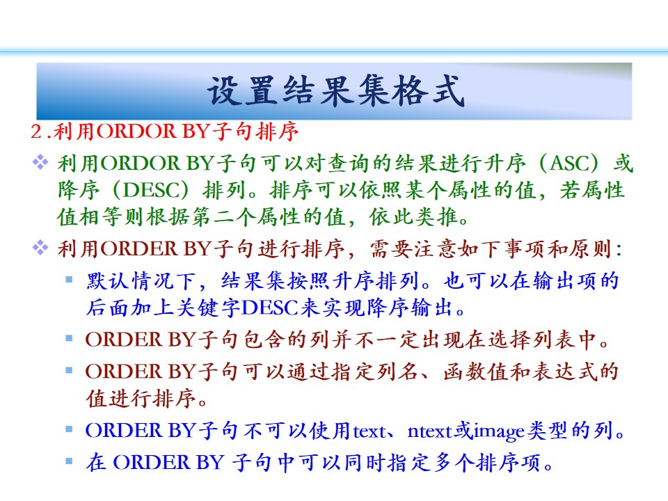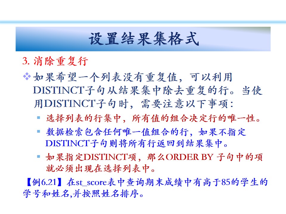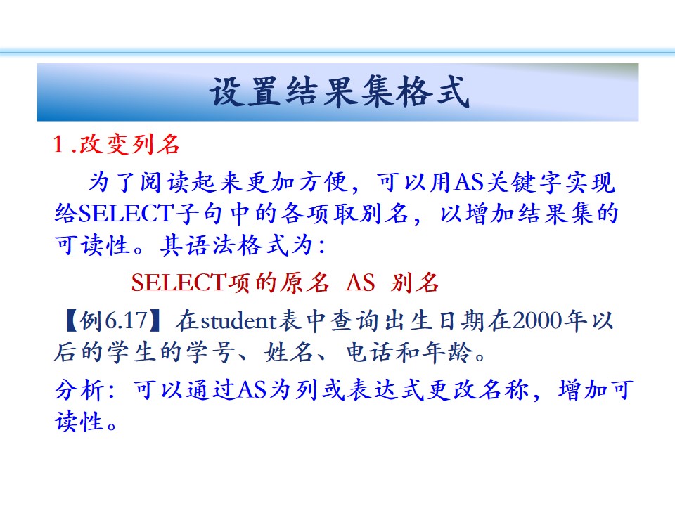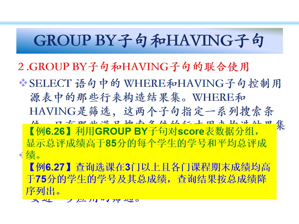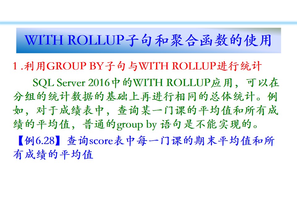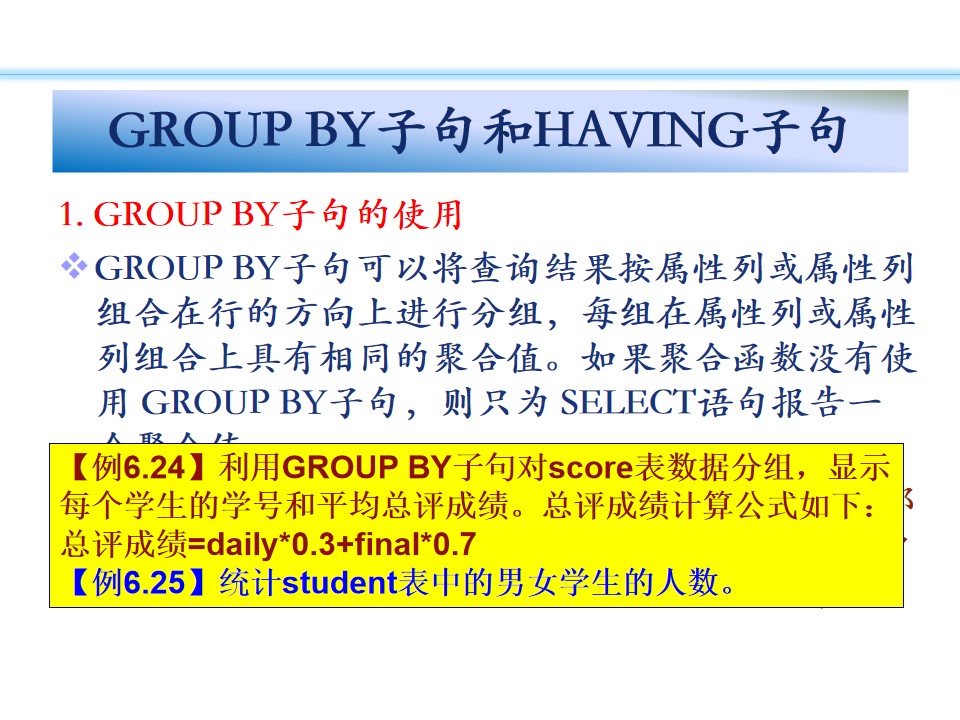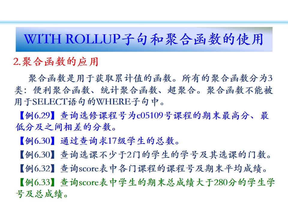 6.2 设置结果集格式 、GROUP BY子句和HAVING子句、 WITH ROLLUP子句和聚合函数的使用