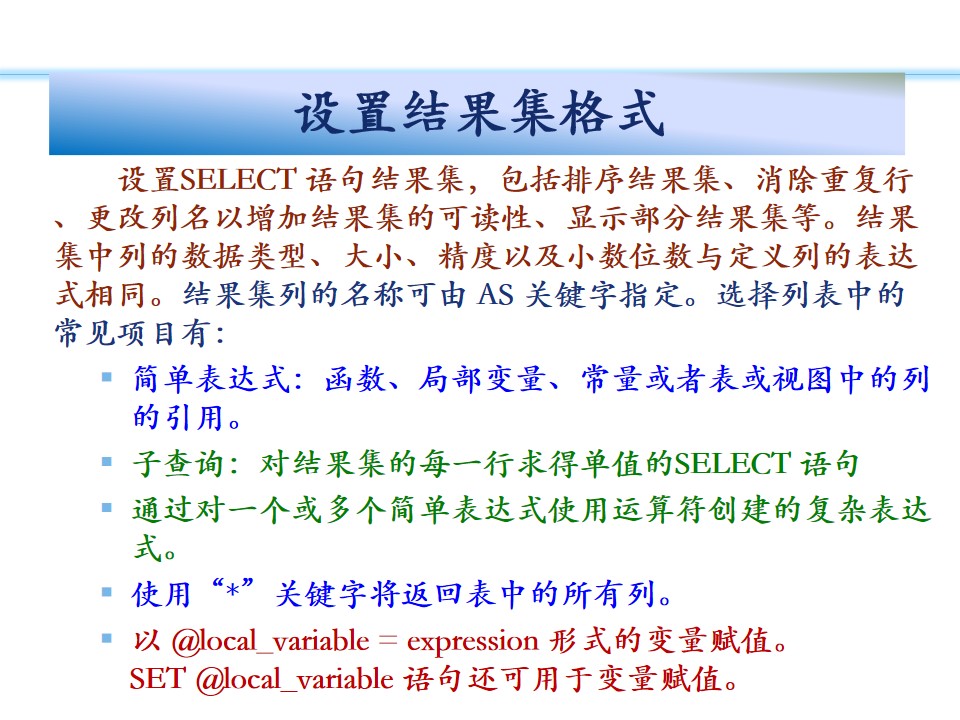 设置结果集格式 、GROUP BY子句和HAVING子句、 WITH ROLLUP子句和聚合函数的使用