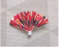 用一张正方形的纸卷扇柄,卷的时候注意扇柄的两端粗细尽量保持一致