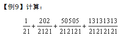 在相同数字较多的分数式中,用字母表示式子中的一部分,使运算更加方便。这就是分数式中的代数法。