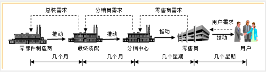 简单来说,推公式供应链,是由制造商的生产量来主导的,先生产,再了解顾客需求量