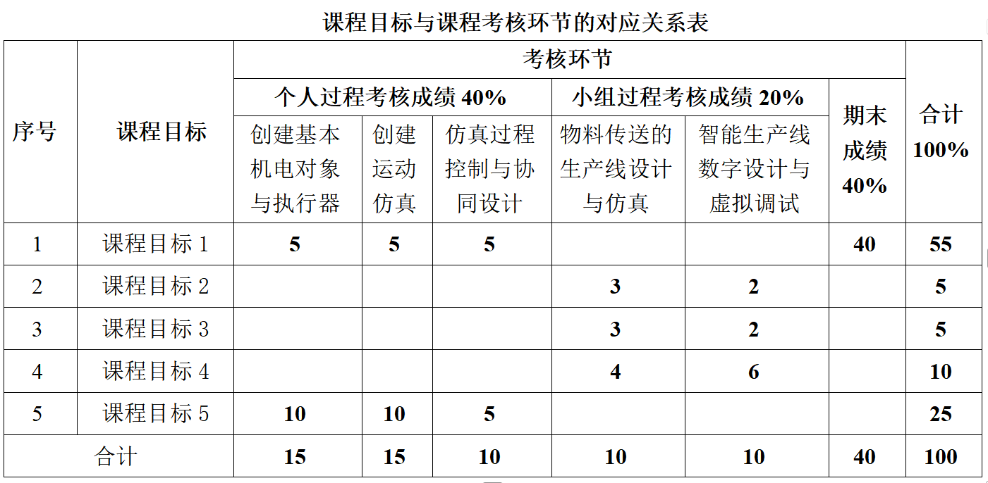 2.成绩评定:总评成绩采用个人过程考核成绩、小组过程考核成绩与期末考核成绩相结合的方式,占比分别为40%、20%和40%。