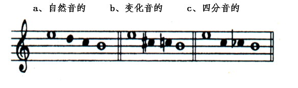 古希腊音阶的基础是四音音列(Tetrachord)。它自上而下排列,两端的音构成固定的四度音程,中间的音程可以变化,从而形成三种不同的四音音阶。四音音列可根据全音和半音的不同位置, 排列成七种不同的音阶。