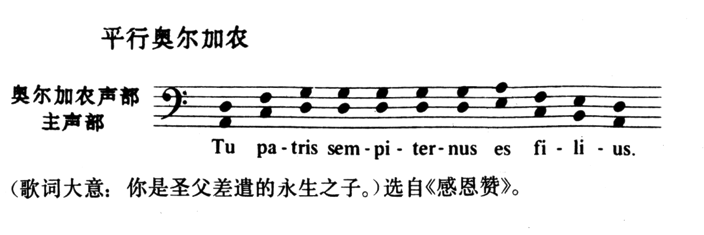 西方最早的复调音乐产生于公元9世纪中叶,是以格里高利圣咏为固定调,在它的上方或下方加上一个平行四度或五度的声部,从而构成的二声部音乐。这种最早的复调音乐叫奥尔加农,也叫平行奥尔加农。