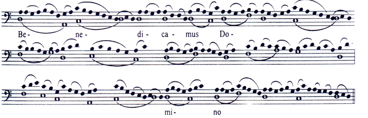 约12世纪左右,奥尔加农声部音符增多,与定旋律声部构成了多音对一音的关系,具有流动性,形成花唱式的华丽奥尔加农复调风格。