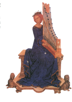 中世纪最典型的拨弦乐器是竖琴(harp)、琉特琴(lute)和索尔特里琴(psaltery) 。