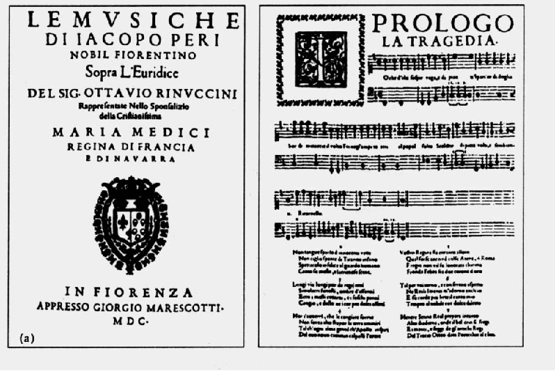 歌剧的产生和佛罗伦萨的“卡梅拉塔会社”的活动直接有关。欧洲历史上的第一部歌剧是由诗人里努契尼写剧本、佩里作曲的歌剧《达夫尼》(Dafne),可惜乐谱已经失传。现存的第一部歌剧是《优丽迪茜》。