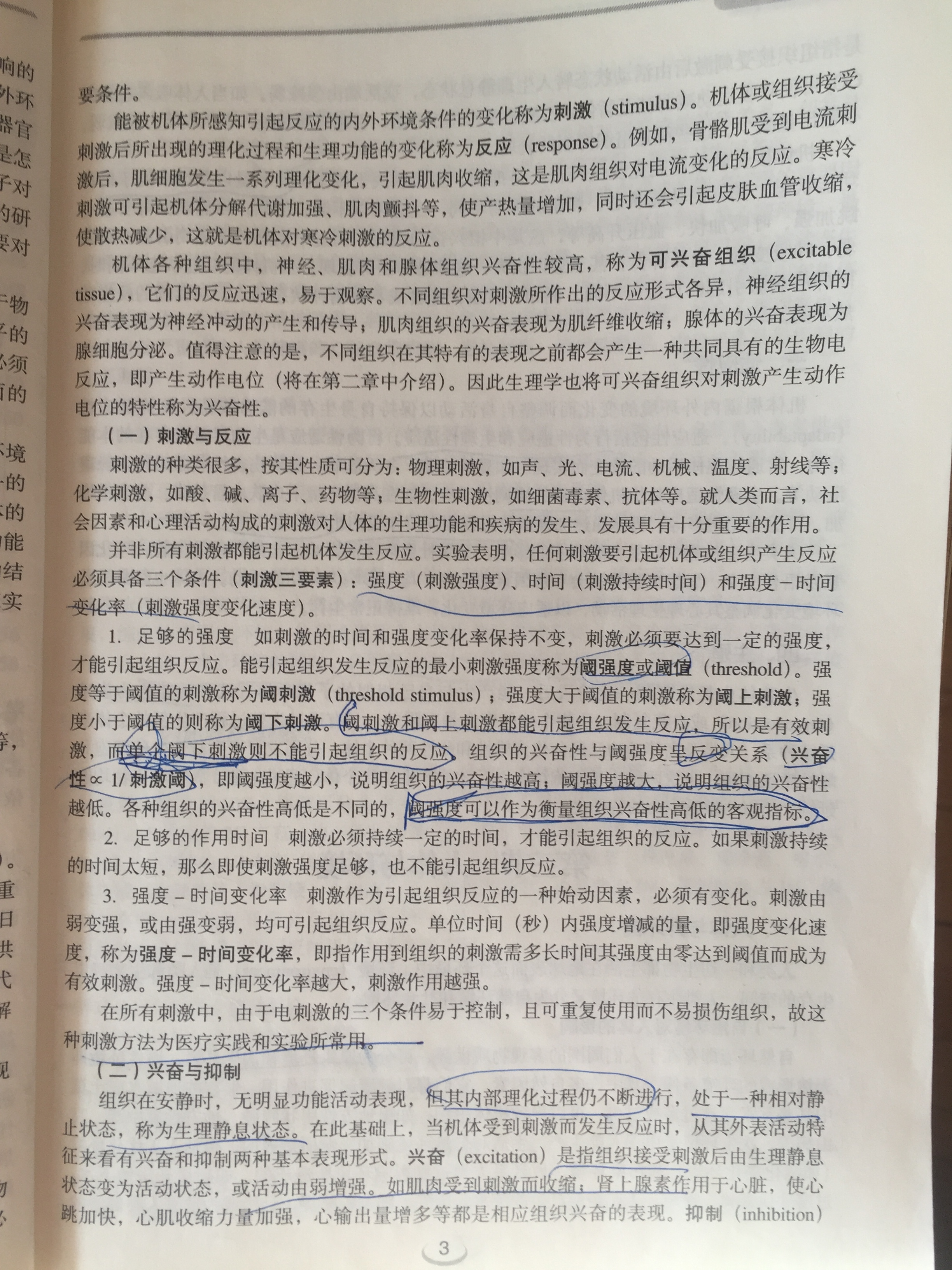 刺激(stimulation):能引起机体或组织细胞发生反应的环境因素的变化