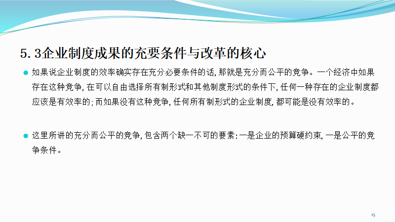 • 5 国有企业改革的核心是创造竞争的公平环境