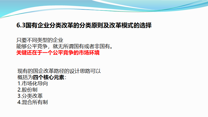 • 5 国有企业改革的核心是创造竞争的公平环境
