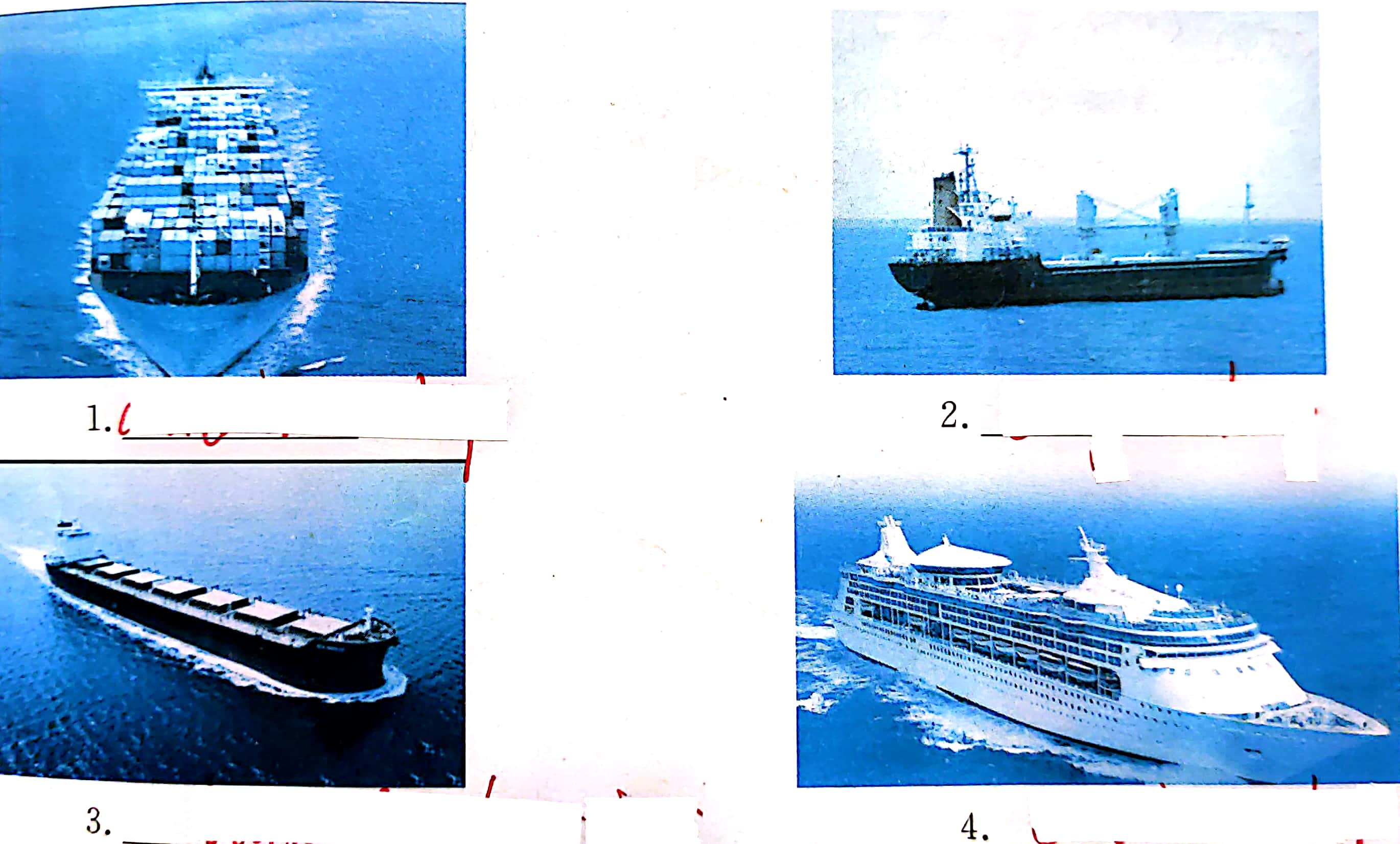 Directions:Listen to the sentences and write down the name of ship under each picture.