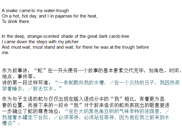 Lawrence rewrote many of his novels several times to perfect them and similarly he returned to some of his early poems when they were collected in 1928. This was in part to fictionalise them, but also to remove some of the artifice of his first works. As he put in himself: "A young man is afraid of his demon and puts his hand over the demon's mouth sometimes and speaks for him." His best known poems are probably those dealing with nature such as those in Birds Beasts and Flowers and Tortoises. Snake, one of his most frequently anthologised, displays some of his most frequent concerns; those of man's modern distance from nature and subtle hints at religious themes.