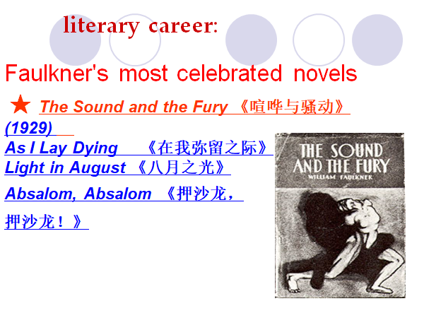 William Faulkner (1897-1962), who came from an old southern family, grew up in Oxford, Mississippi. He joined the Canadian, and later the British, Royal Air Force during the First World War, studied for a while at the University of Mississippi, and temporarily worked for a New York bookstore and a New Orleans newspaper. Except for some trips to Europe and Asia, and a few brief stays in Hollywood as a scriptwriter, he worked on his novels and short stories on a farm in Oxford.
