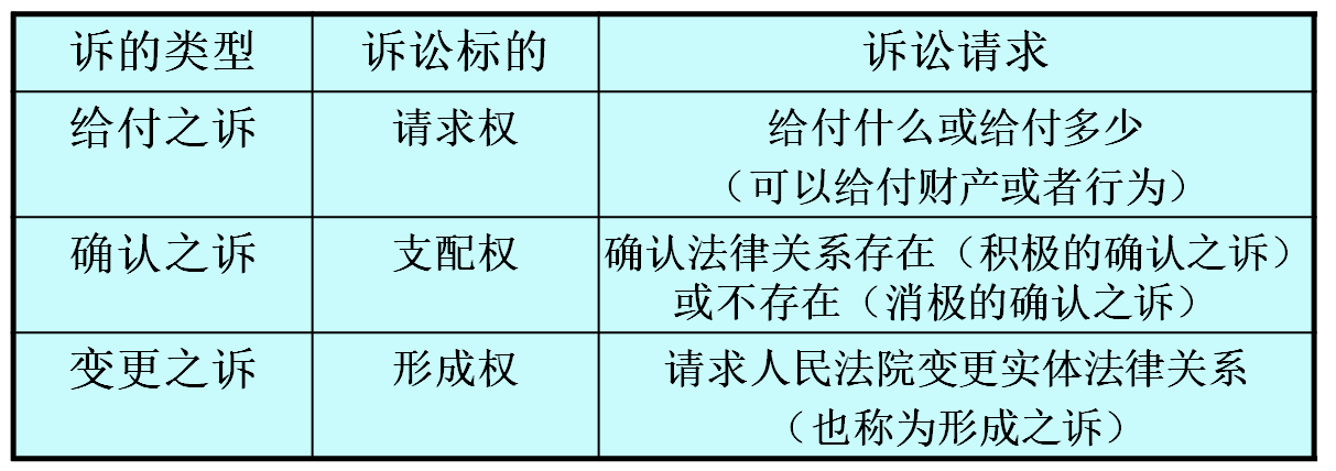 掌握:诉的种类、反诉的特征和构成要件、诉讼价值目标。