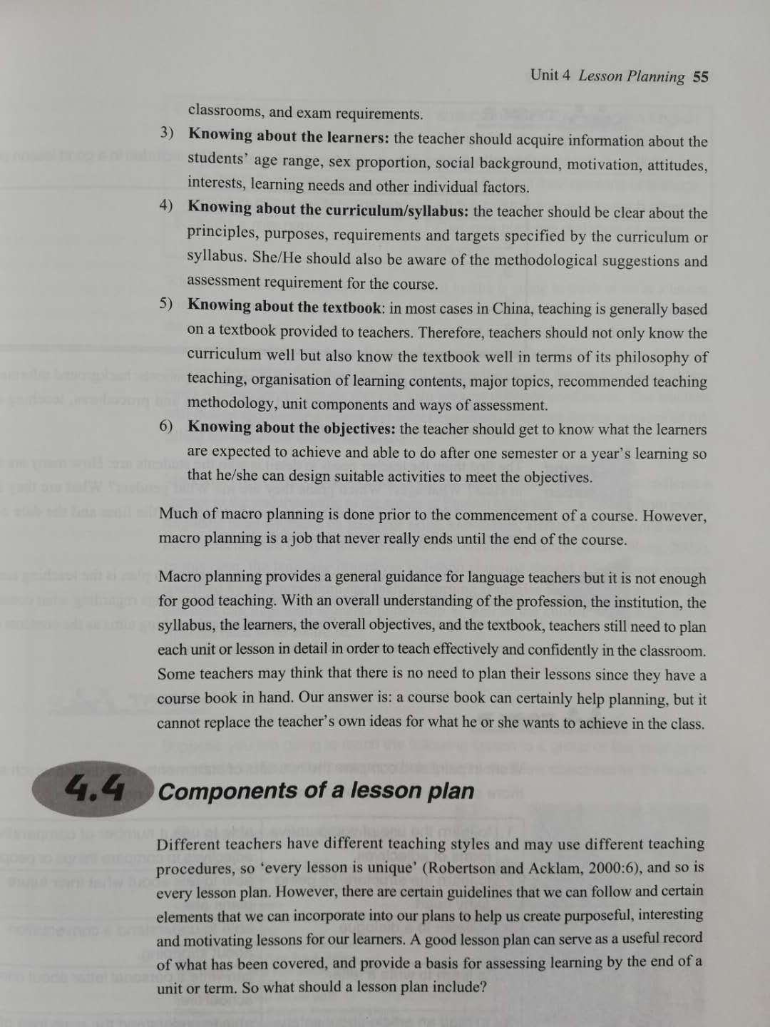 • 4.3 Samples of Unit Planning and Lesson Planning
